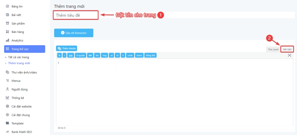 2. Bước 2: Đặt tên cho Trang –> Mở tab Văn bản