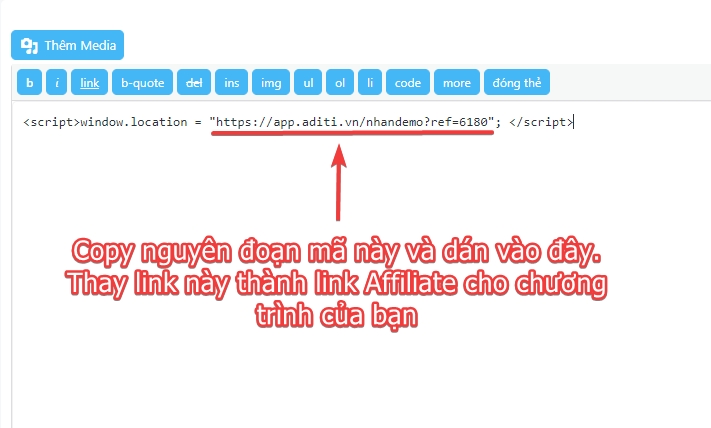 3. Bước 3: Copy phần mã dưới đây và thay phần DÁN_LINK_REF_VÀO_ĐÂY bằng link của bạn (Lưu ý: Nhớ giữ nguyên dấu "")