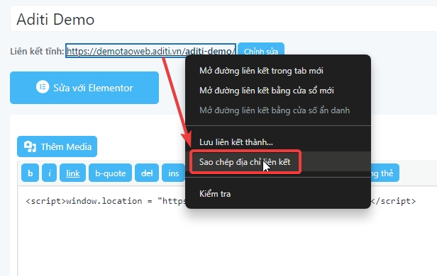 5. Bước 5: Click chuột phải vào liên kết tĩnh rồi nhấn Sao chép địa chỉ liên kết để lấy link rút gọn theo tên miền của bạn