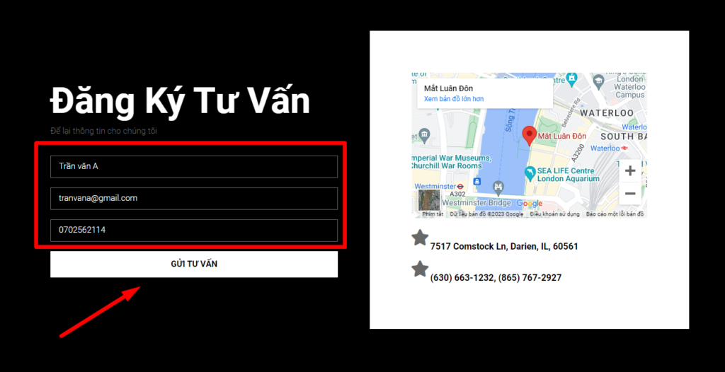 Điền thông tin và bấm Gủi tư vấn