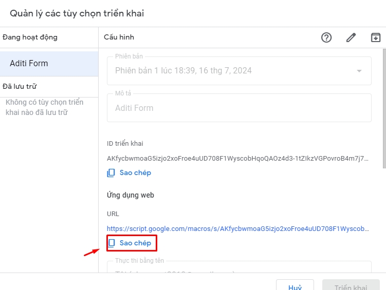 *** Bây giờ hãy nhấp vào Triển khai. Bạn có thể được yêu cầu xem xét các quyền ngay bây giờ.