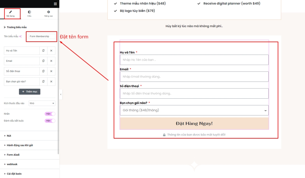 Phần 2. Chỉnh sửa Form trong Landing Page