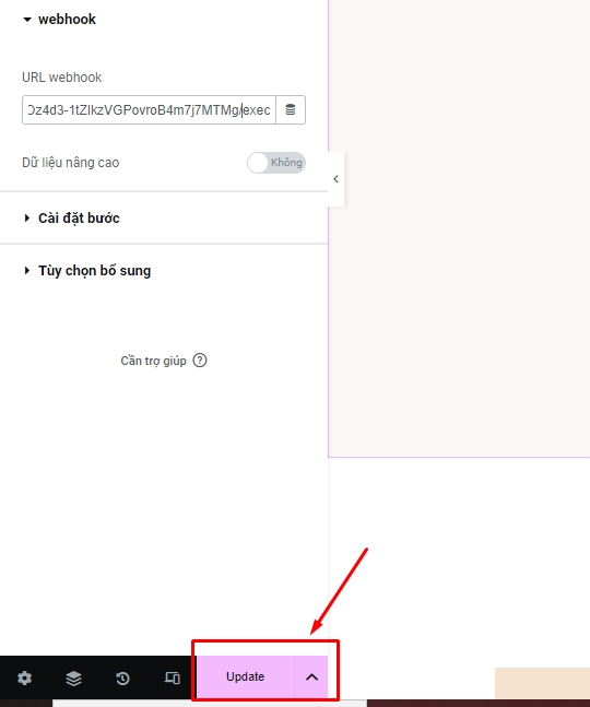 Bước 3. Dán URL đã copy ở bước 6 phần I vào webhook