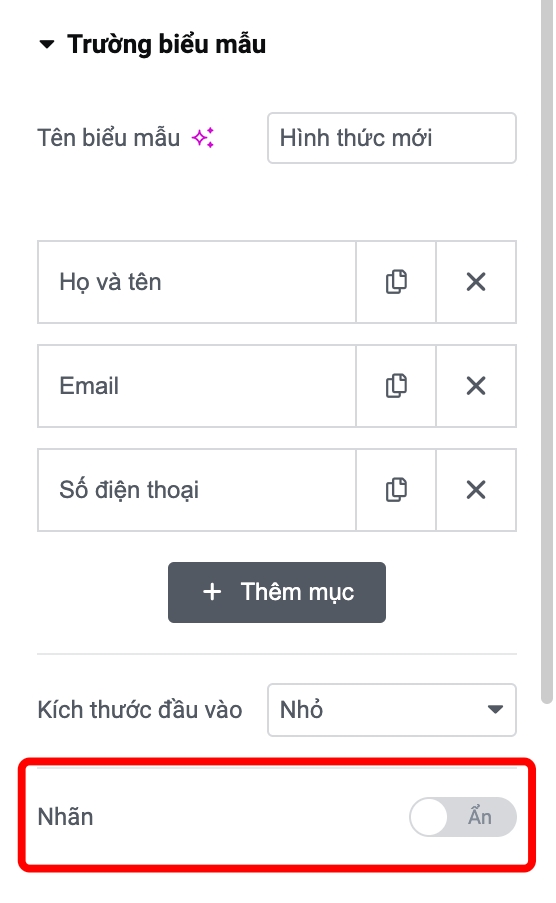 Bước 5: Bạn có thể bật Ẩn/ Hiện nhãn của form (nếu muốn)