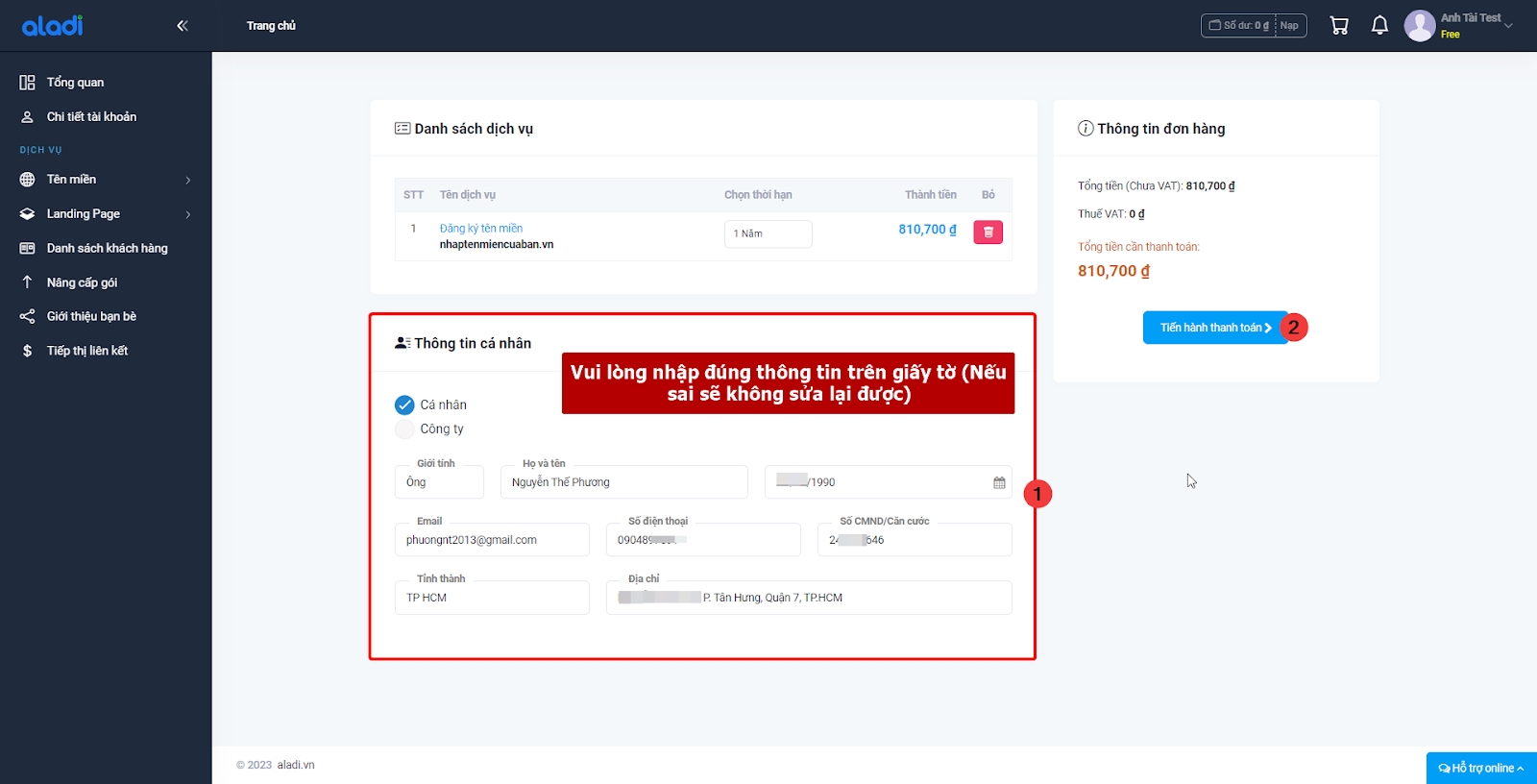 Bước 2: Điền thông tin cá nhân → Tiến hành đăng ký.