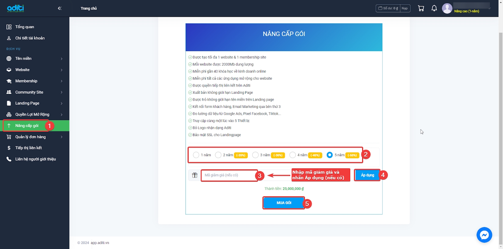 Việc nâng cấp tài khoản, bạn thực hiện theo trình tự như bên dưới: