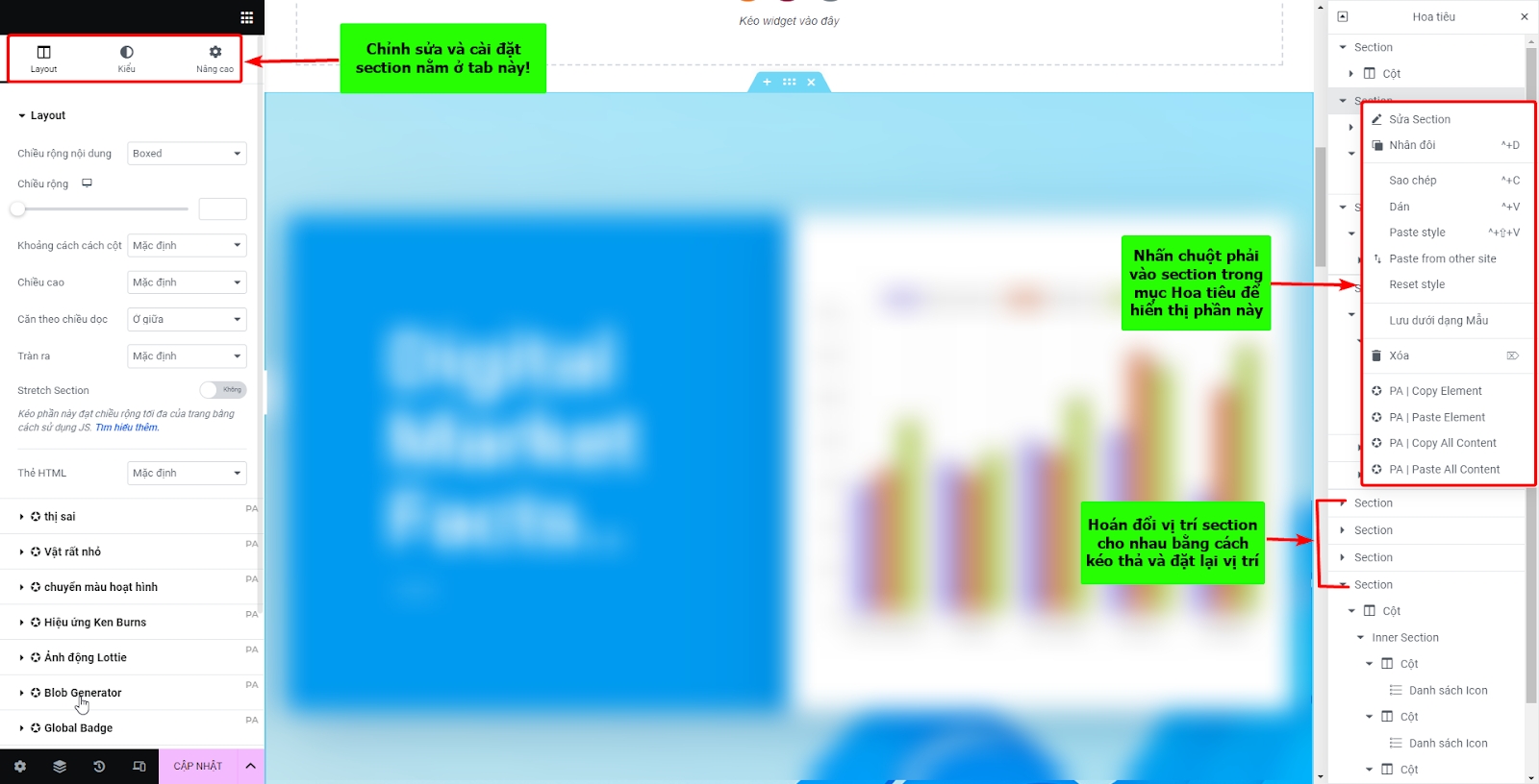 Khi muốn chỉnh sửa section, bạn hãy xem hình dưới