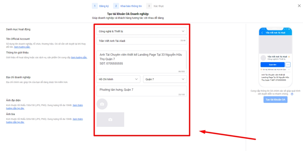 Bạn cần nhập các thông tin cần thiết và bắt buộc. Các thao tác này cũng vô cùng đơn giản