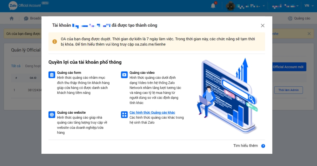 Bước 4. Chờ tài khoản được kiểm duyệt